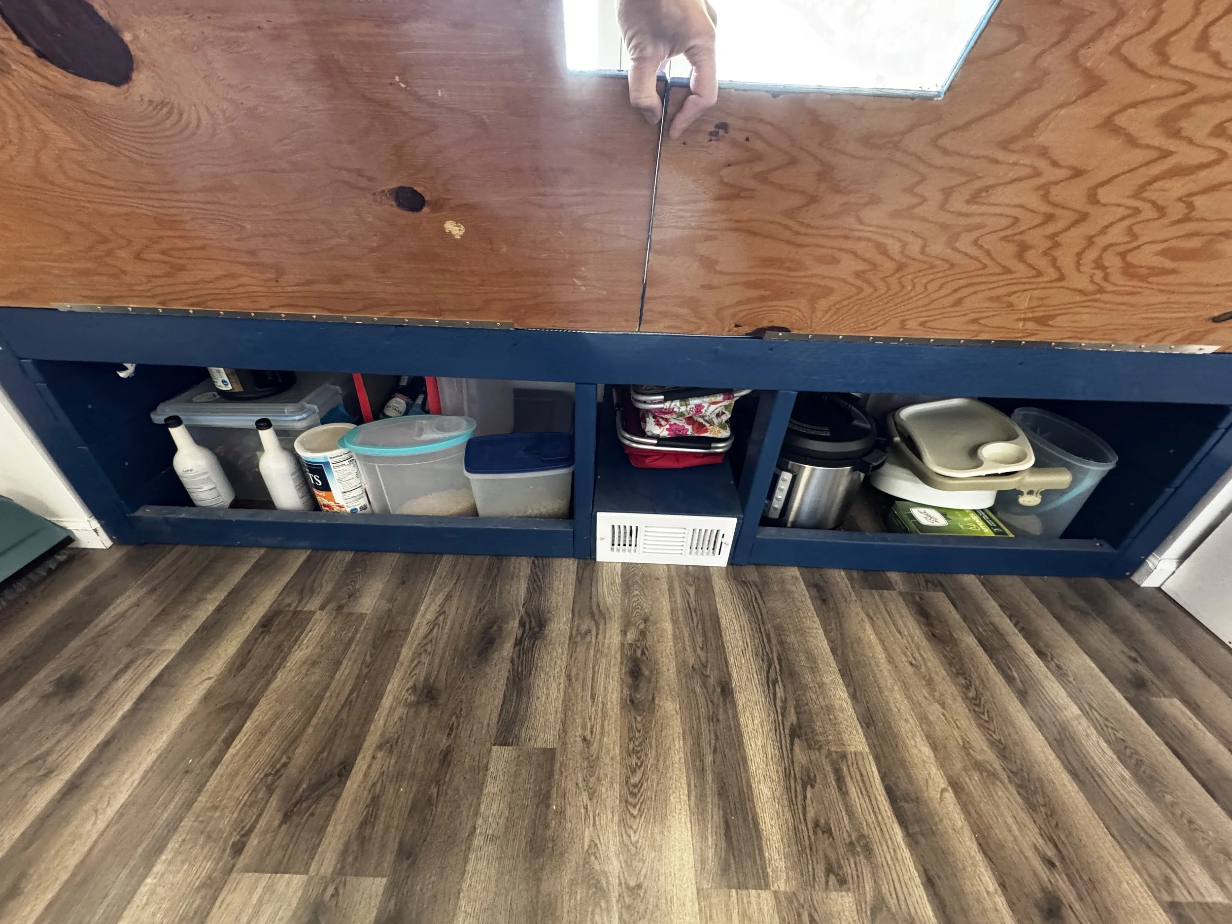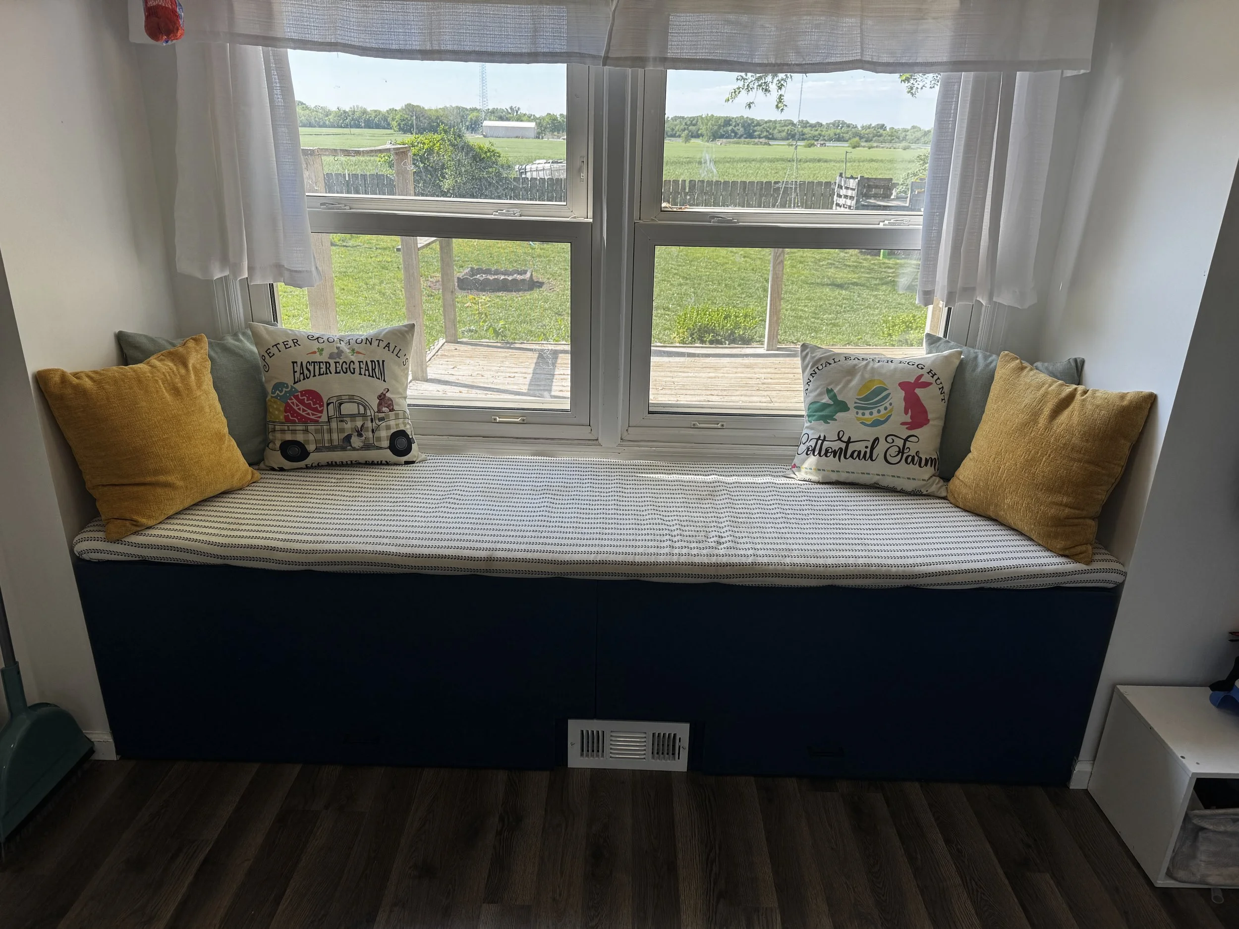 This customer had a breakfast nook in their older home. As a growing family, storage was more important for their space. We built this bench exactly to their dimensions and added front-access storage underneath. We even built in a chase for air from the floor vent to travel. This helped ensure no drop in their space comfort.